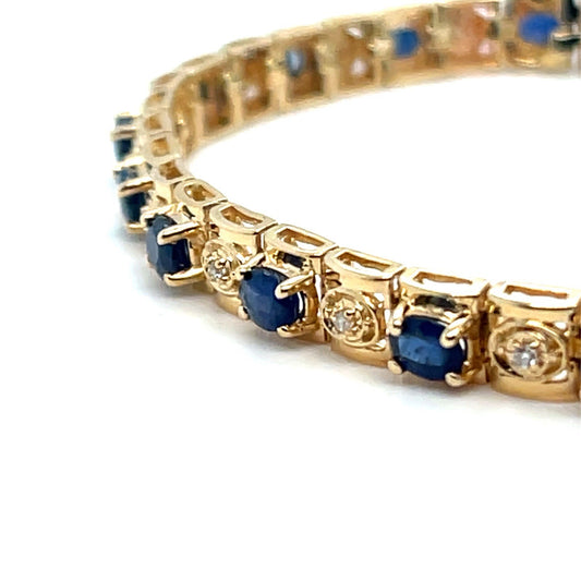 14K Yellow Gold 7” Oval Sapphire Diamond Bracelet 12.90g .15CTW