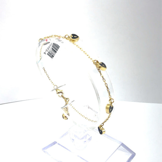 14K Yellow Gold Women’s 7.5” Black Heart Locks Enamel Bracelet 3.70g