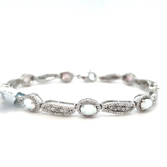 925 Sterling Silver Women’s 7.5 Synthetic Opal Bracelet 13.55g .21CTW