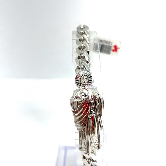 925 Sterling Silver 8” San Judas Cuban Style Bracelet 6.8mm