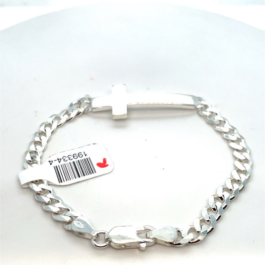 925 Sterling Silver Women’s 8” Cross Cuban Style Bracelet 12.00g