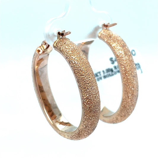14k Rose Gold Women’s Hollow Hoop Sparkle Cut Earrings 3.00g