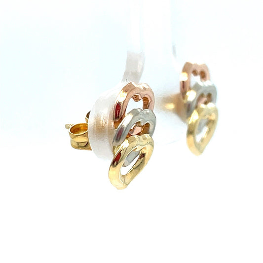18k Tri Color Gold Women’s 3 Hearts Earrings 0.90g
