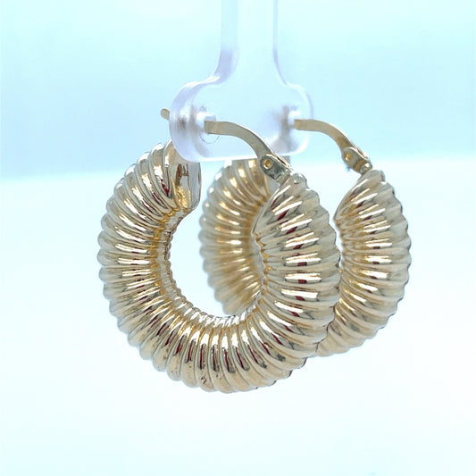 14k Yellow Gold Ribbed Hoop Earrings 5.00g 7.8x27