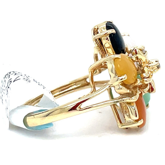 10k Yellow Gold Women’s Multi Color Jade Diamond Ring 4.14g Size 5.5
