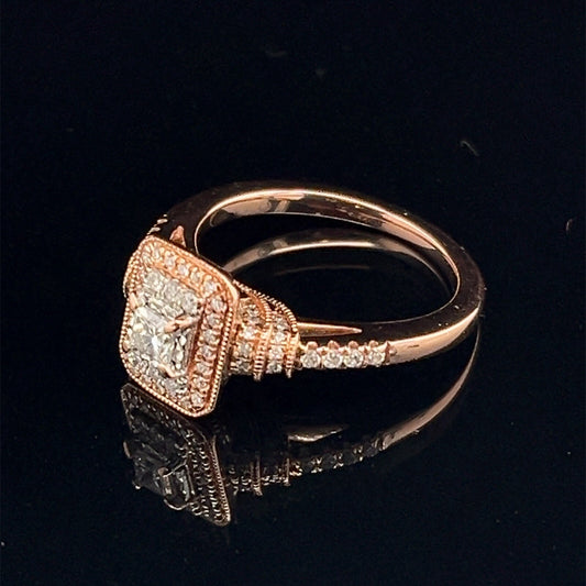 10k Rose Gold Princess And Round Diamond Halo Style Engagement Ring .40ctw Size6