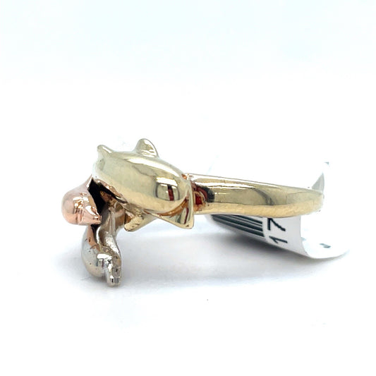 10Kt Tri Color Gold Dolphin Ring 3.35g Size 7