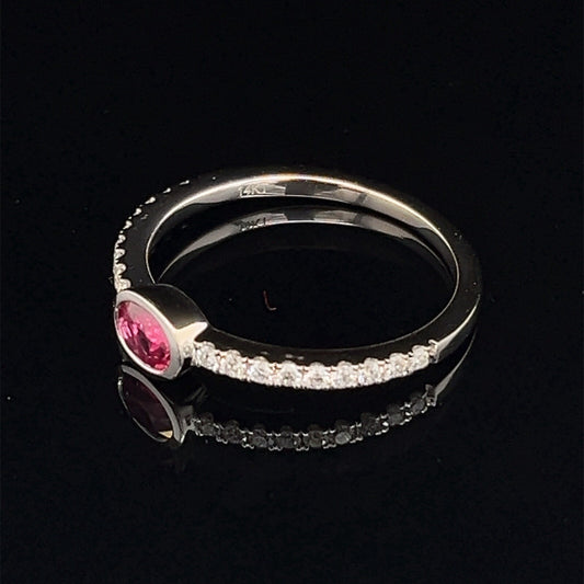 14 karat white gold natural ruby and diamond ring G/H VS Size 7