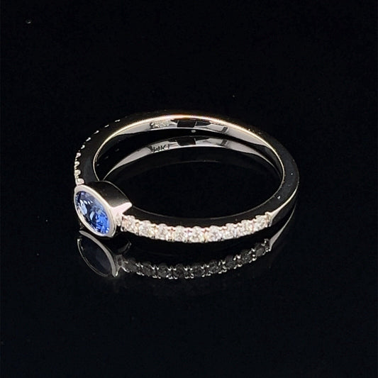 14 karat white gold natural blue sapphire and diamond ring G/H VS size 7