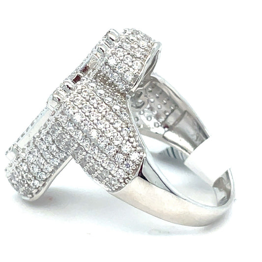 925 Sterling Silver CZ Jesus Cross Ring 7.50g Size 10