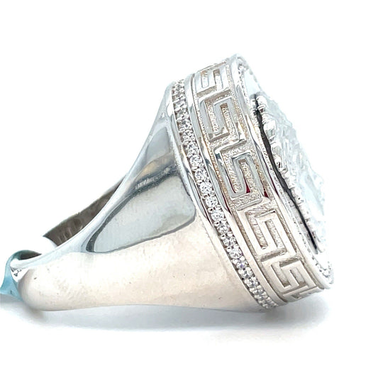 925 Sterling Silver CZ Versace Style Greek Key Ring 10.30g Size 10
