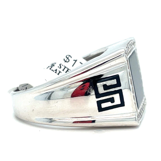 925 Sterling Silver Men’s CZ Square Black Onyx Ring 10.70g Size 11