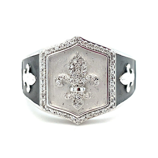 925 Sterling Silver Fluer De Lis Diamond Ring 11.90g .20CTW Size 10