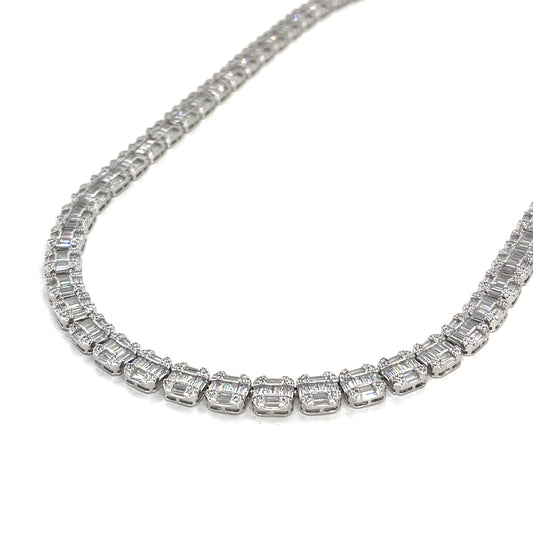 Sterling Silver Necklace | CZ Square Cluster Design, 20 INCH