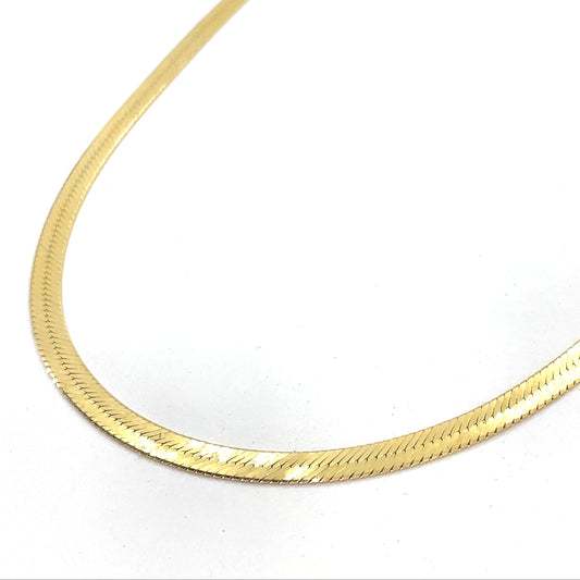 14K Yellow Gold Necklace | Herringbone Design, 18 inch