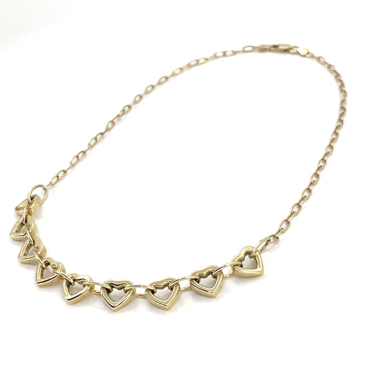 14K Yellow Gold Necklace | Oval Link Hearts Design, 18 inch