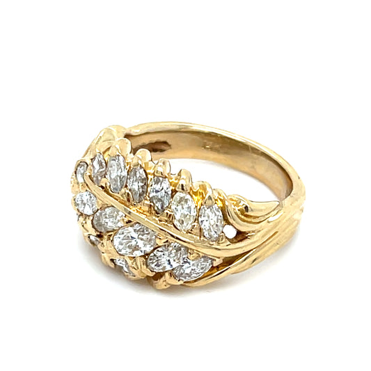 14K Yellow Gold Ring | Natural Diamond Cluster with 15 Marquise Diamonds 2.25 CTW, Size 7