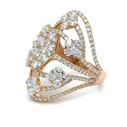 18K Rose Gold Oval and Clovers Natural Diamond Cluster ring | 4.52 TCW VS clarity F-G color, size 6.5