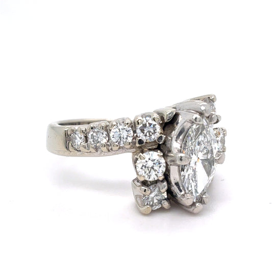 14K White Gold Ring | Marquis Diamond Bypass Design 0.70 TCW, Size 6