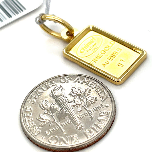14k Yellow Gold 1g 999 Bar Pendant 1.58g