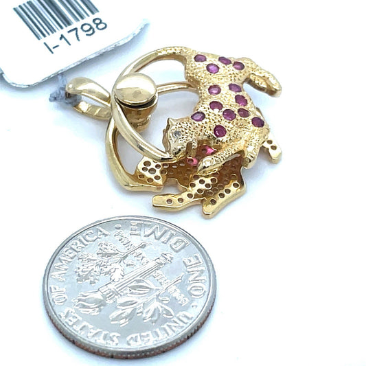 18K Yellow Gold 2 Part 3D Jaguar Pendant 4.70g