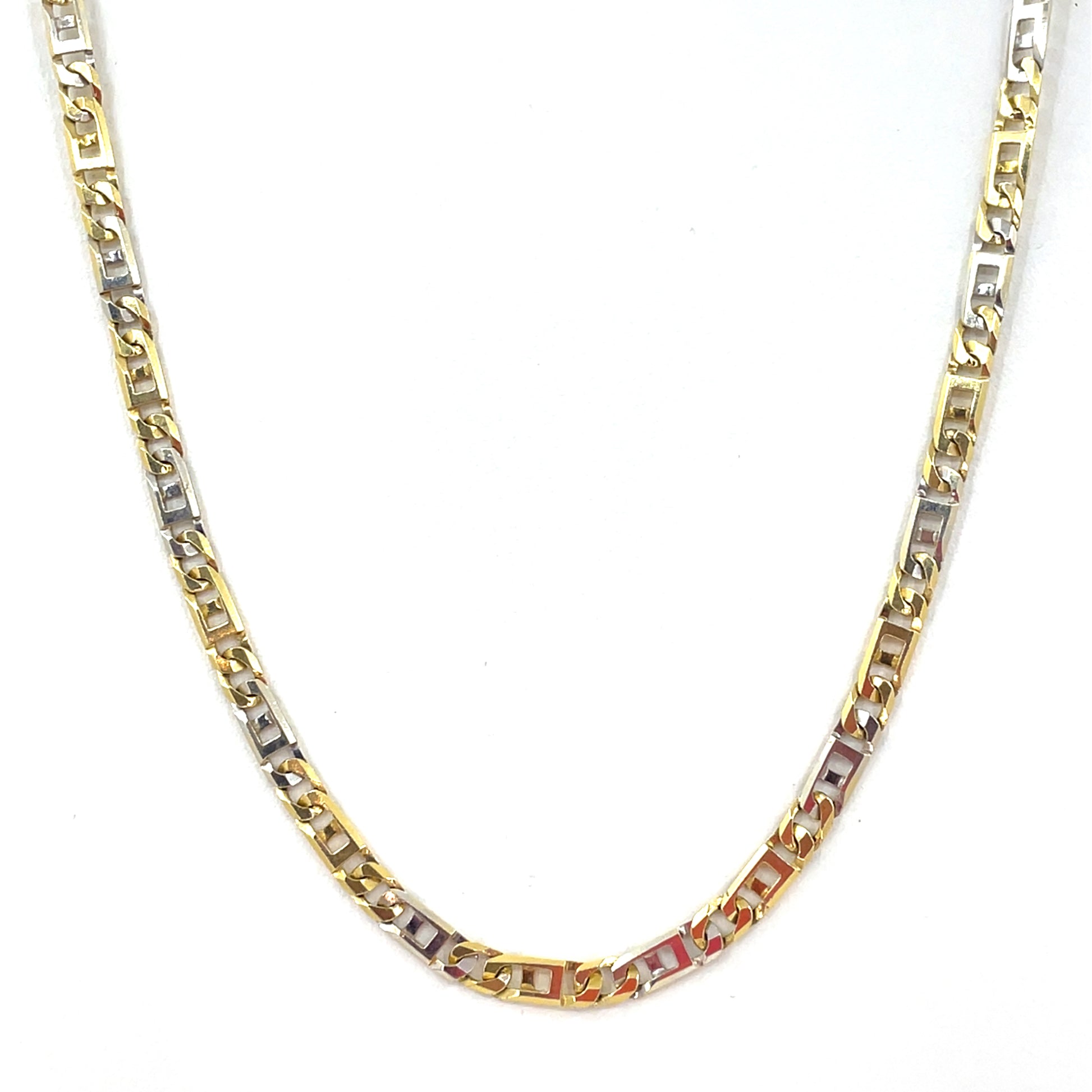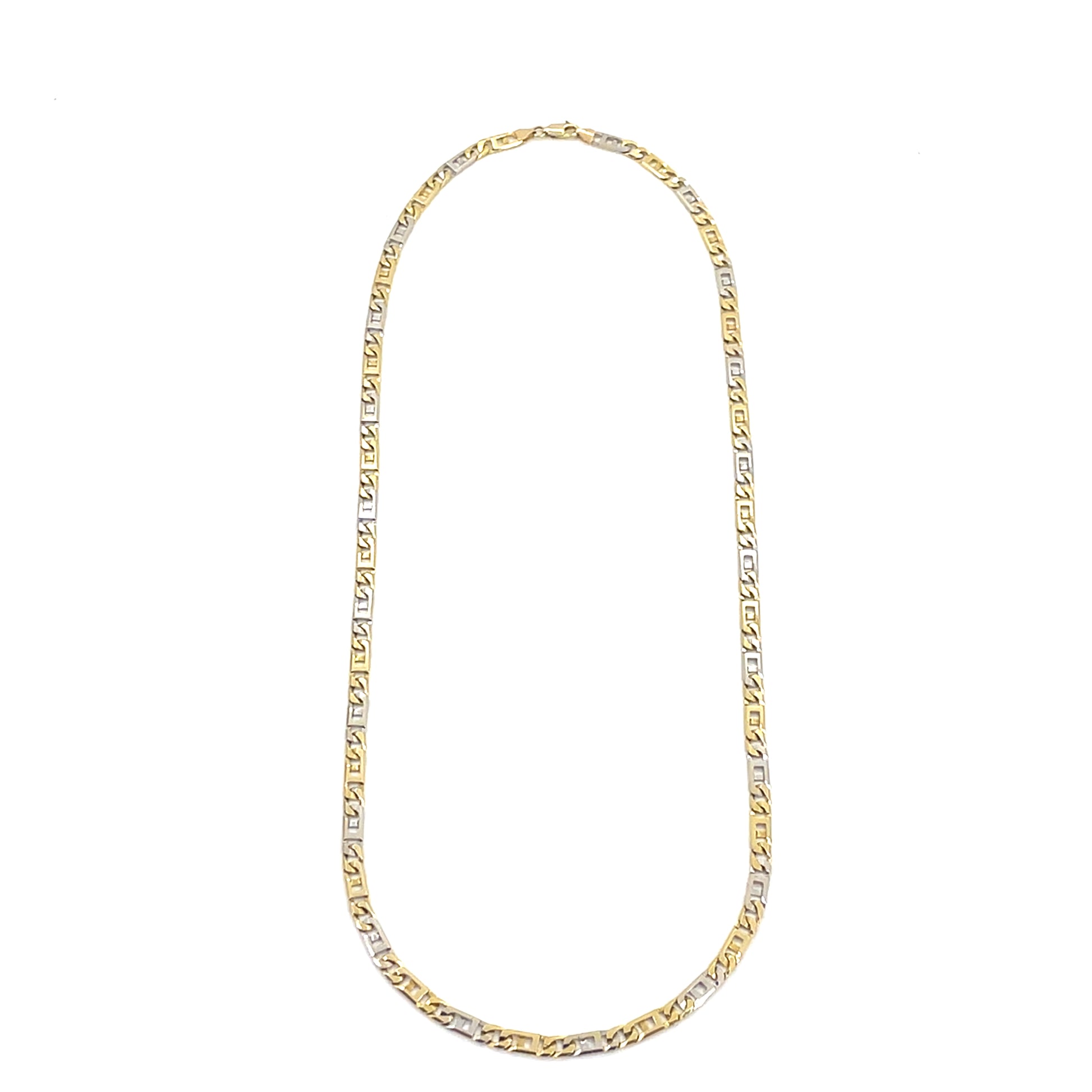 14K Two Tone Gold Necklace | Square Mariner Link Design, 24 inch