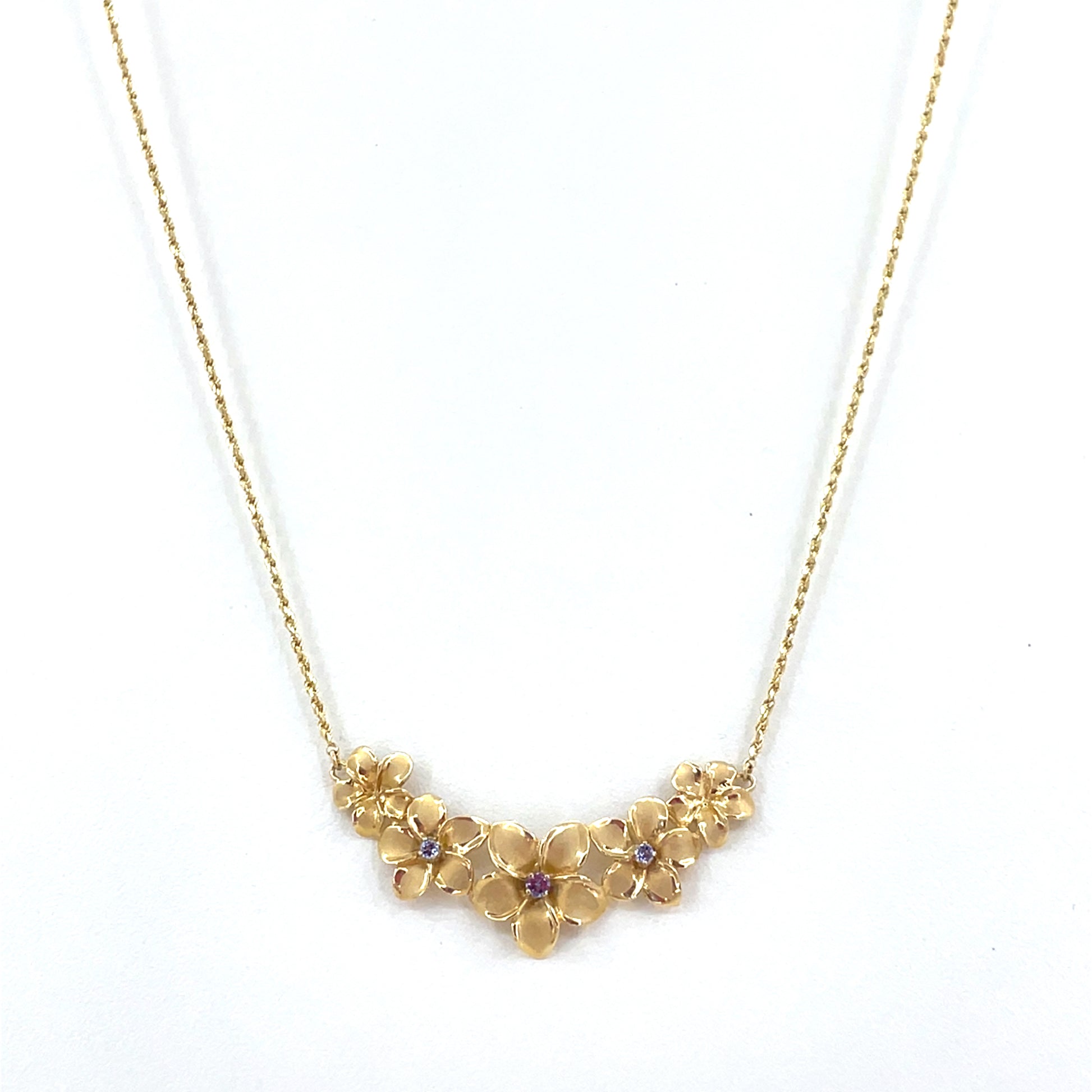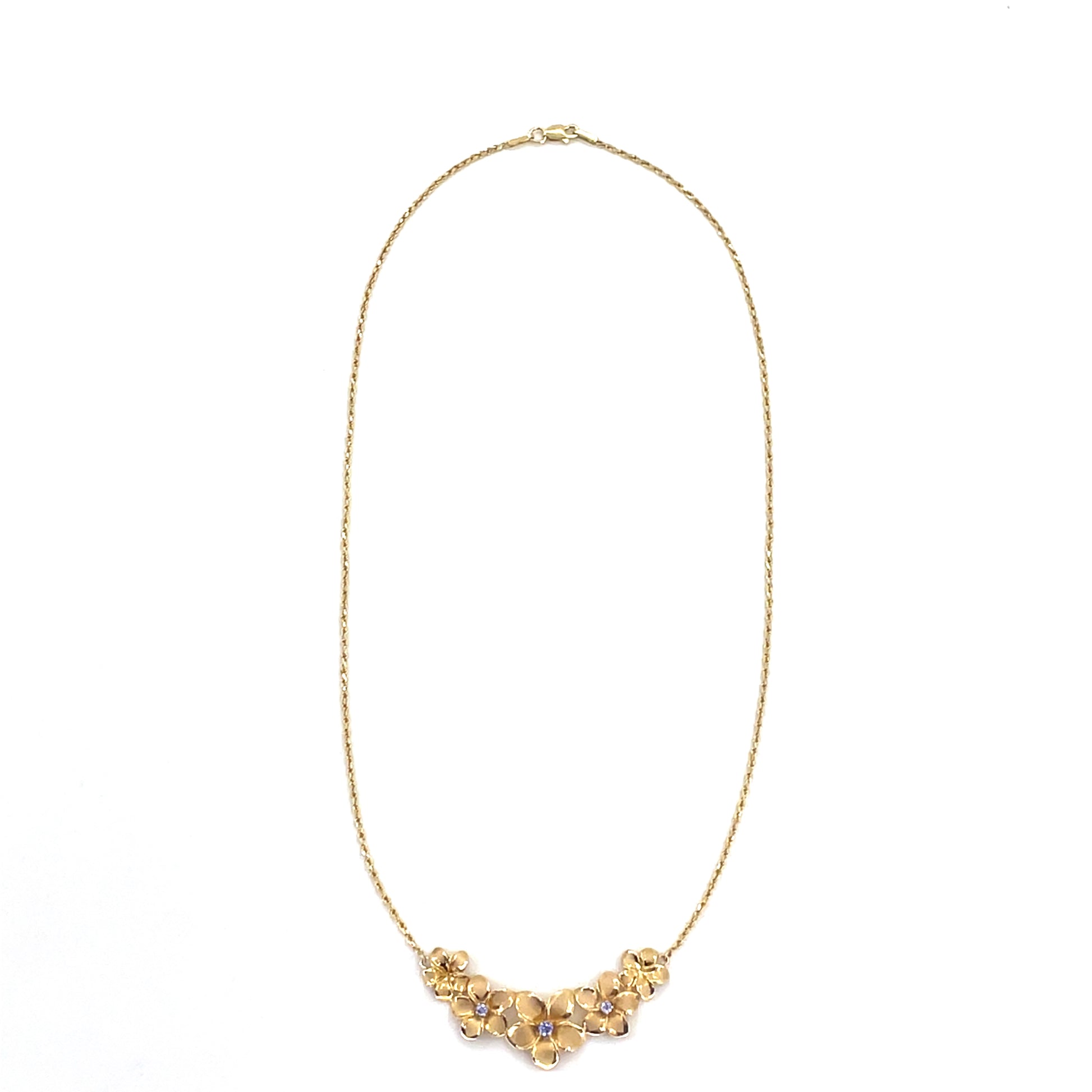 14K Yellow Gold Necklace Pendant combo | Rope with Hibiscus Island Flowers pendant, Tanzanite, 17 inch