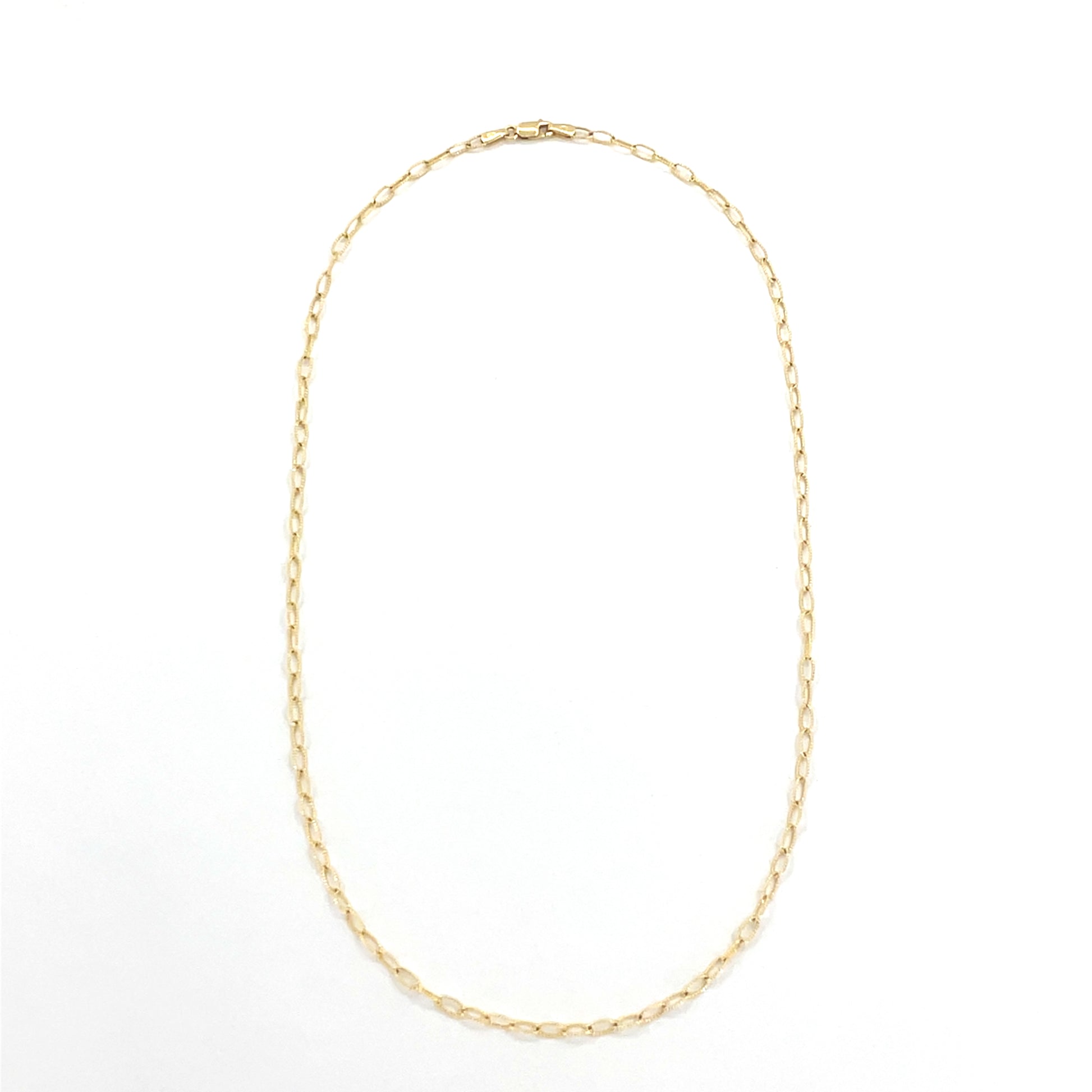 14K Yellow Gold Necklace | Beaded Oval Link Design, 18 inch