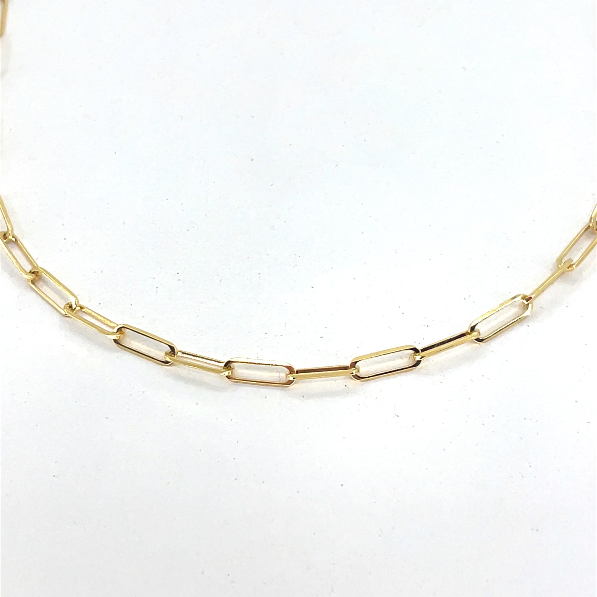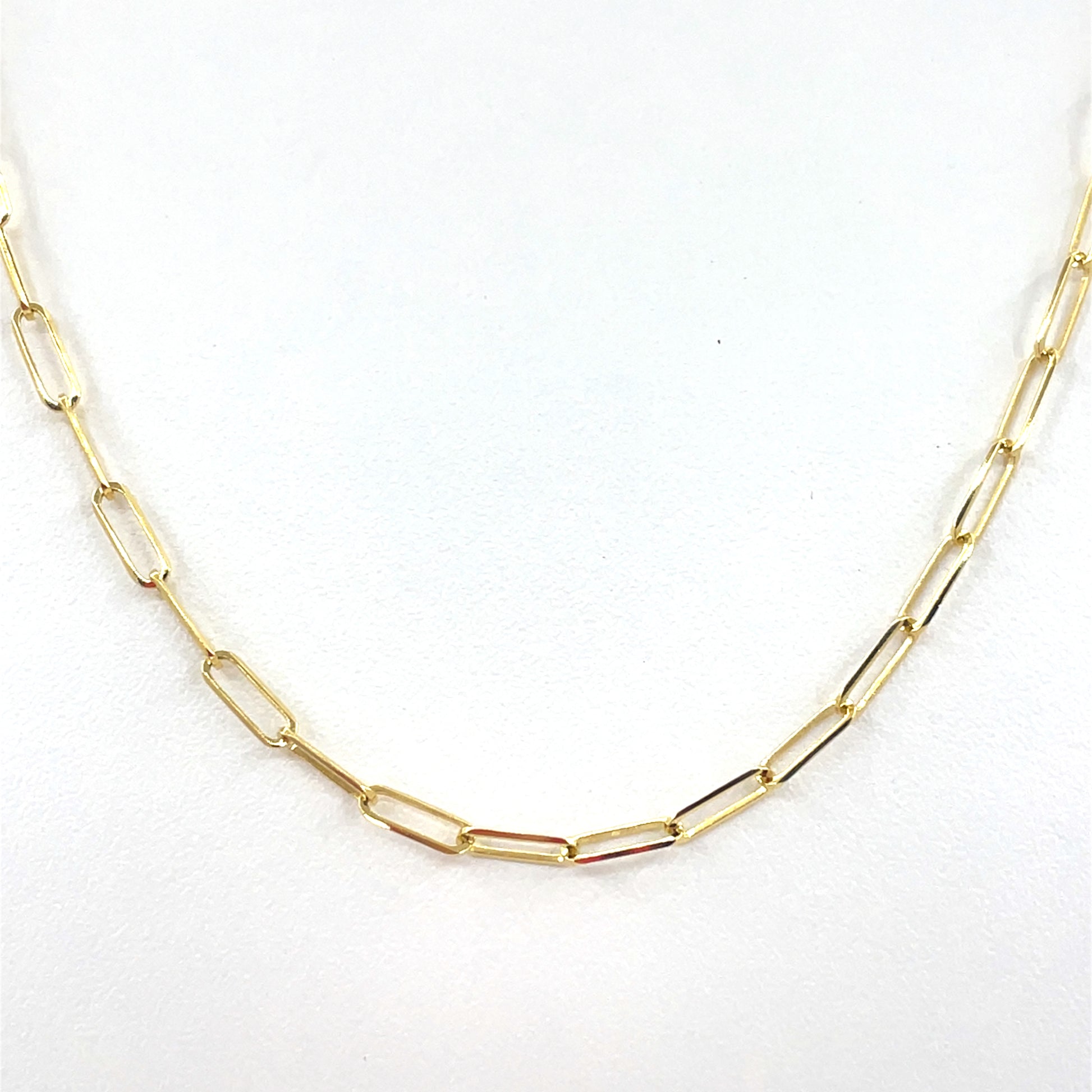 This 14K yellow gold paper clip necklace delivers a clean, modern link design.