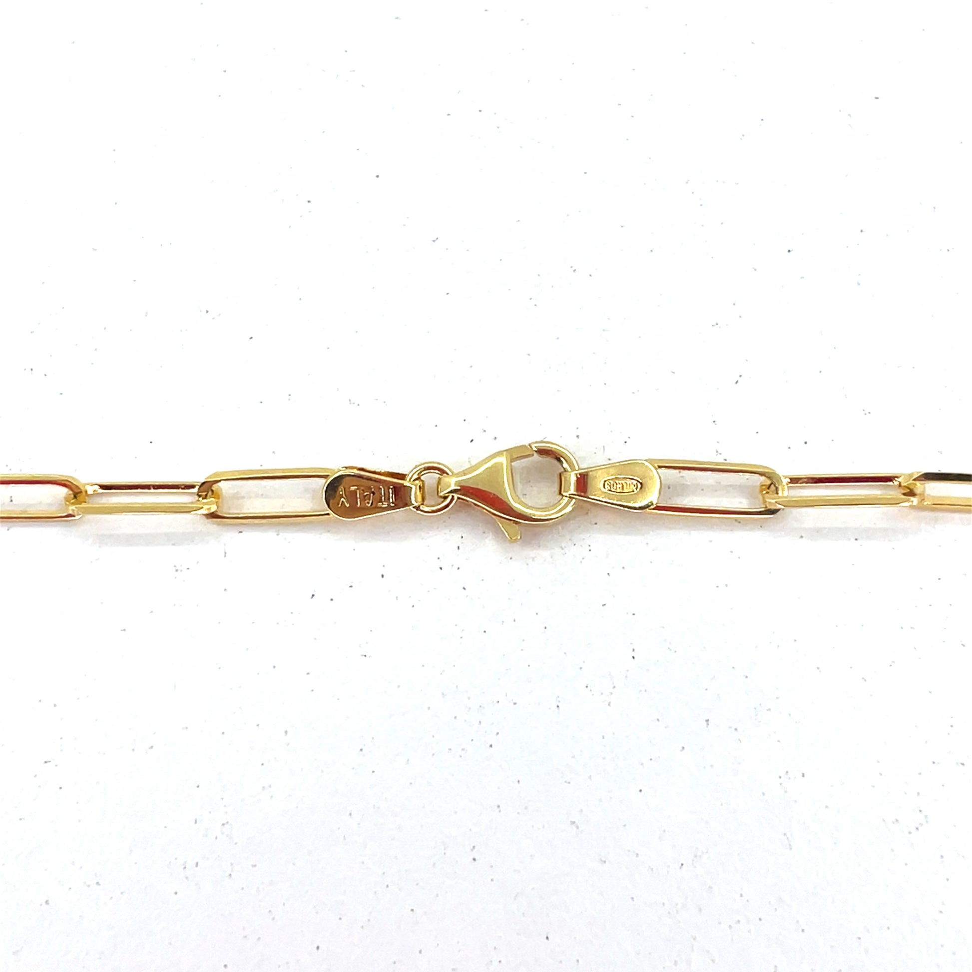 14K Italian Yellow Gold Hollow paperclip Necklace | Paper Clip Design, 18 inch