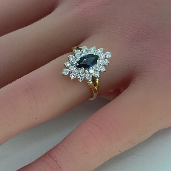 14K Yellow Gold Ring | Marquise Sapphire and Diamond Design, Size 6.25