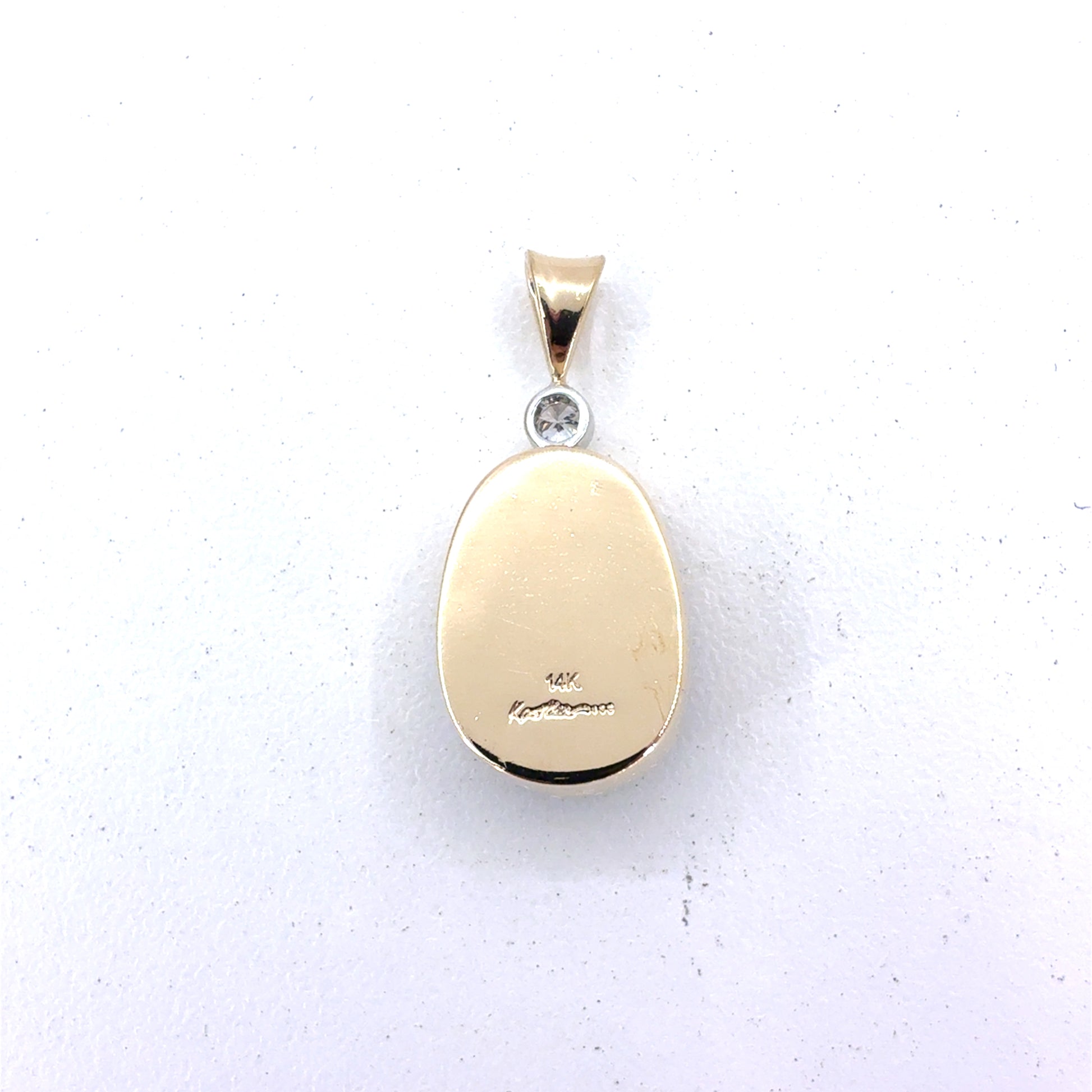 This 14K yellow gold women’s pendant features an opal design with a clean, elegant look.