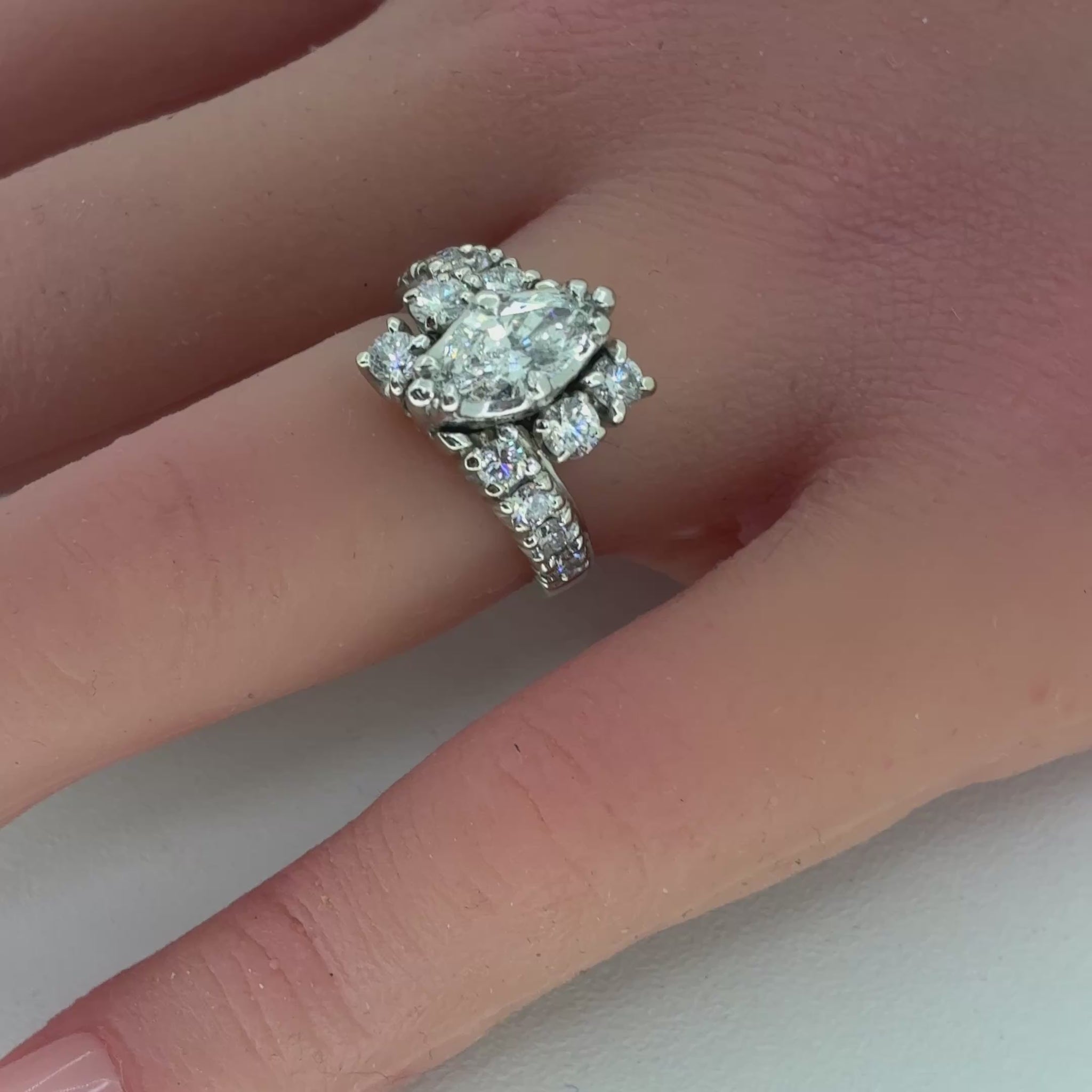 18K White Gold Ring | Diamond Marquise Design 2.00 TCW – Size 6
