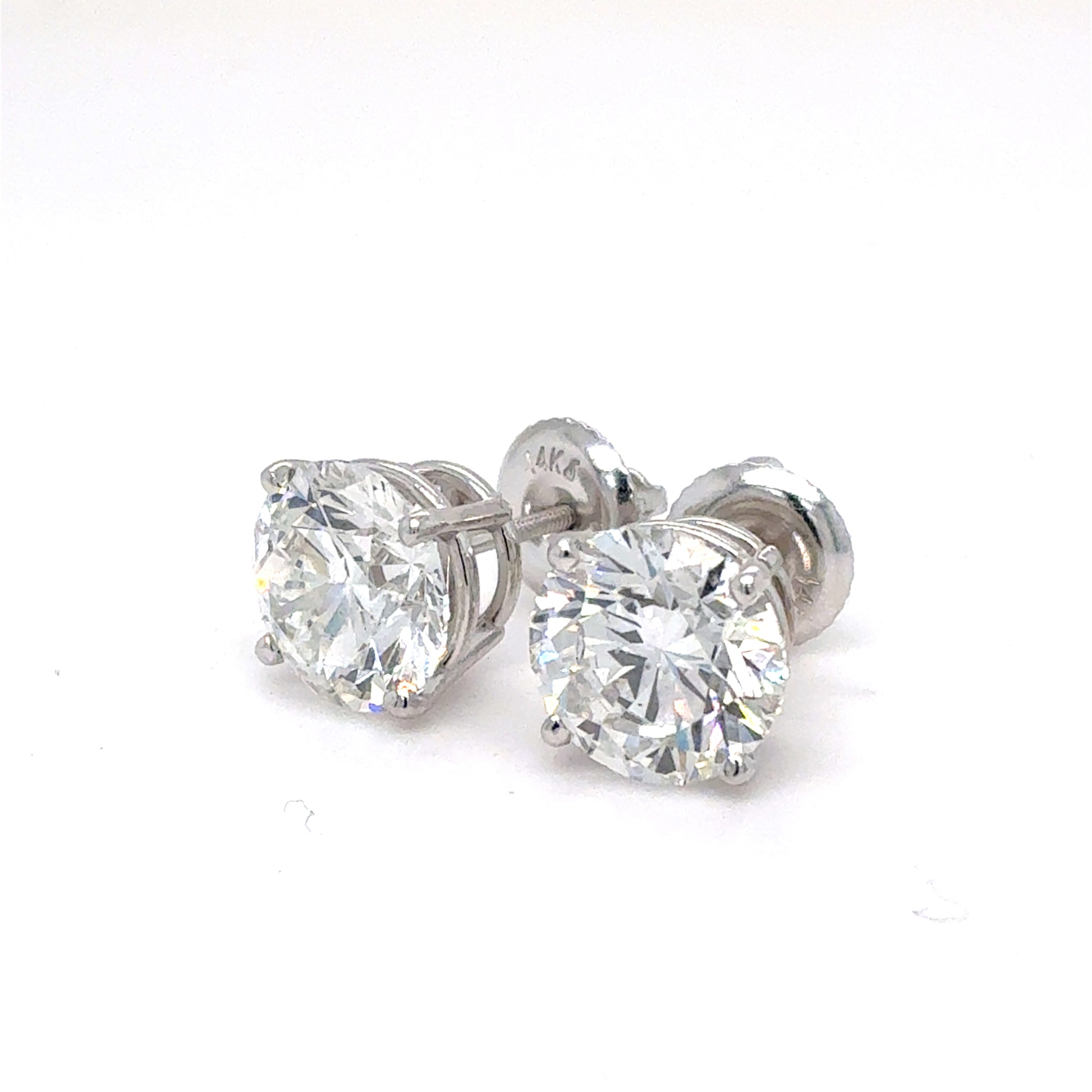 14K White Gold IGI Certified Lab Grown Diamond Four-Prong Solitaire Studs Earrings - 4 ctw