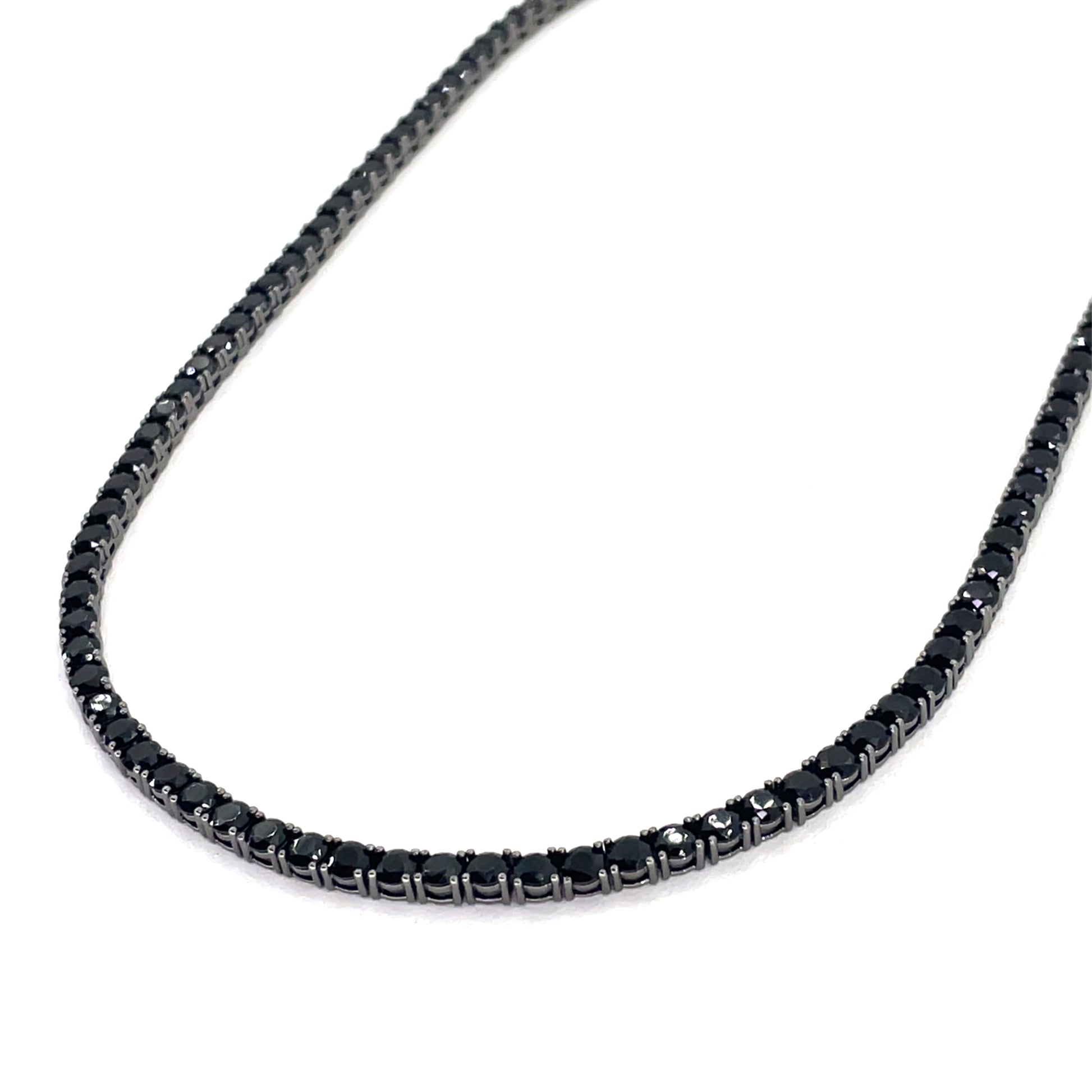 This sterling silver black CZ tennis necklace offers a sleek, modern contrast with a polished finish.