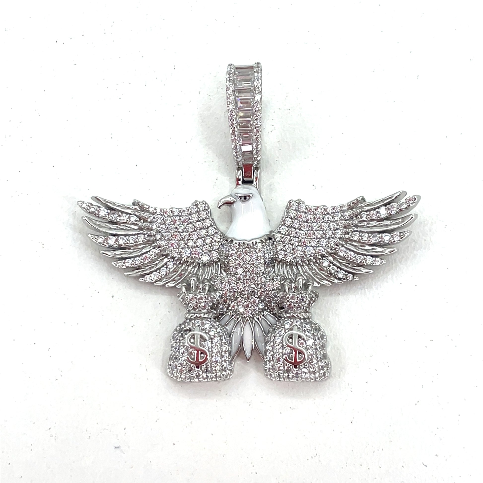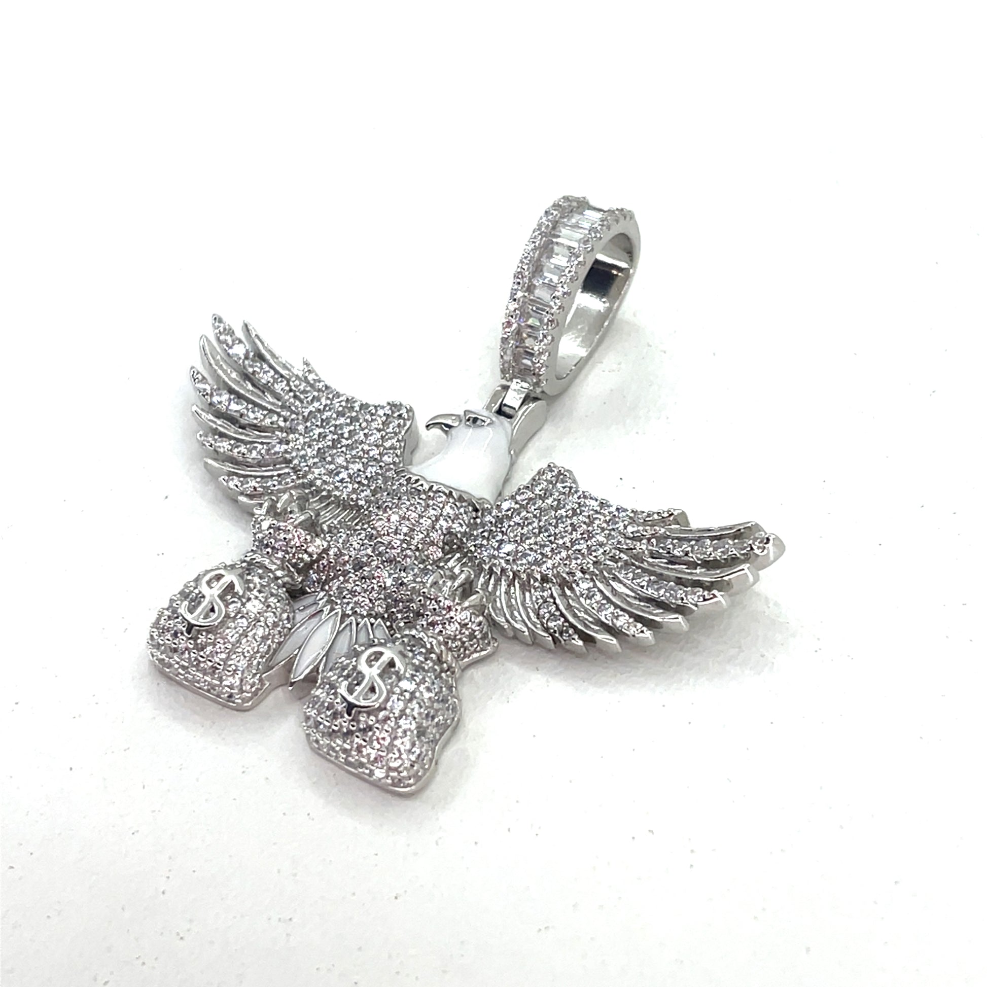 Sterling Silver Men’s Pendant | Bald Eagle with Bags Design, CZ