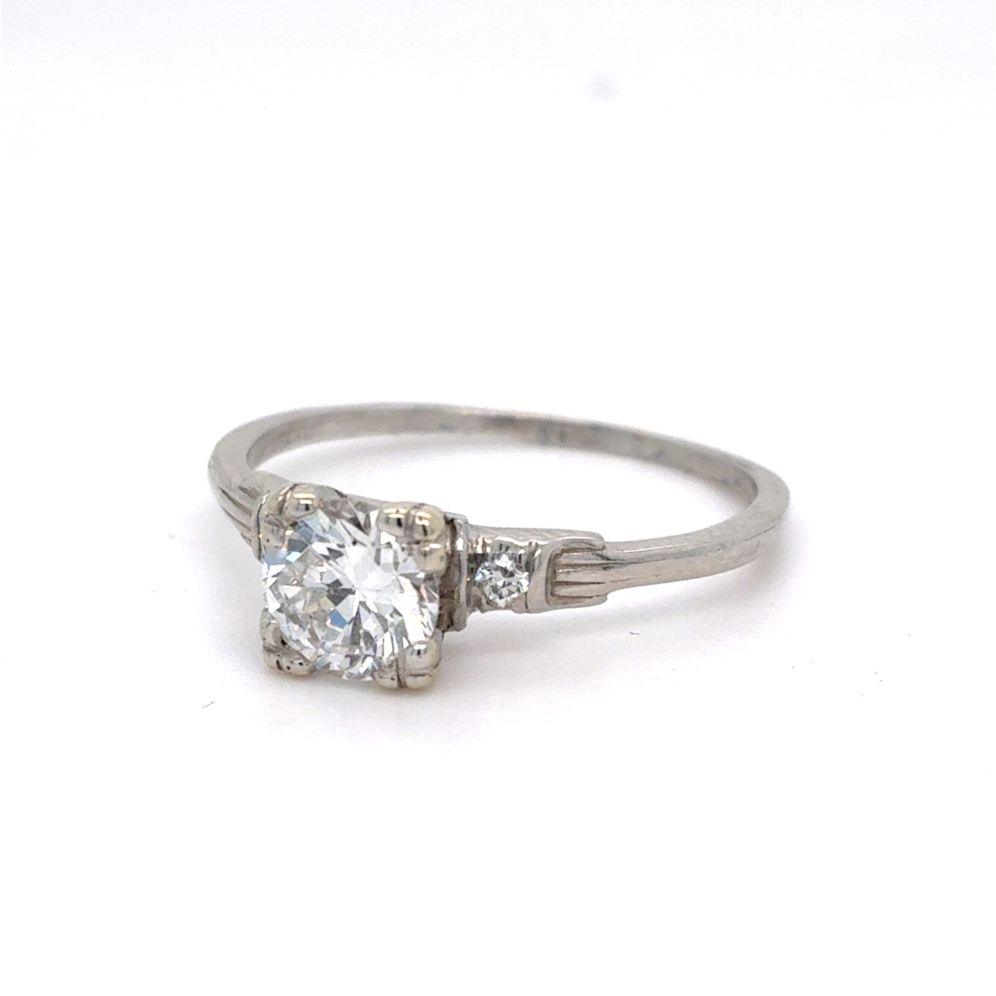 This platinum ring features an old cut diamond design for vintage brilliance and timeless luxury.